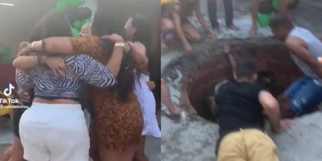 La emoción en una fiesta puede desencadenar algunos accidentes, tal y como lo muestra un video en el que un grupo de mujeres cae a un socavón, mismo que se abre justo en el momento en que ellas están brincando.