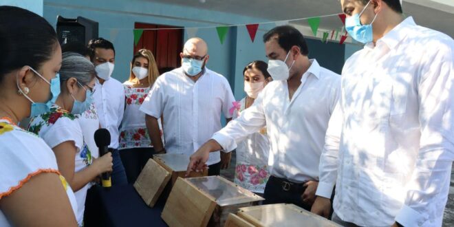 Progreso, Yucatán a 15 de octubre de 2021. En el marco del Día de la Mujer Rural, esta mañana el alcalde Julián Zacarías Curi acudió a la presentación del primer taller de meliponicultura “Xunaan Kab” que brindará el Instituto Municipal de la Mujer (IMM) de Progreso a diez mujeres de la comisaría de San Ignacio.