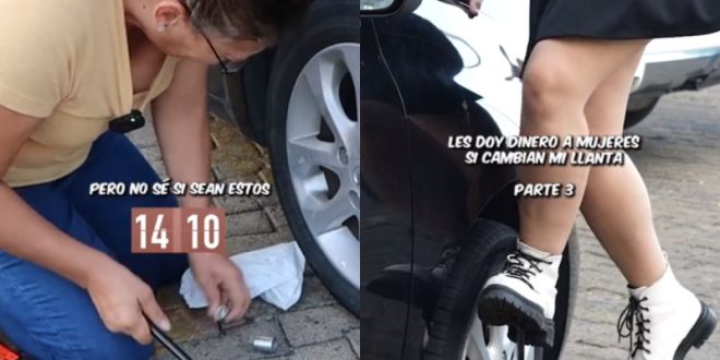 Con un cartel azul, la tiktoker lanzó el reto, pues se podía leer “Mujeres: Te doy $500 si me cambias la llanta” la primera en animarse fue una señora de aproximadamente 55 años quien reveló que nunca había cambiado una llanta, sin embargo, siempre observa a su esposo cuando lo hace, pero con seguridad dijo: