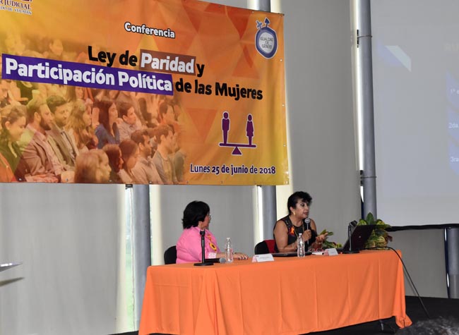 Que las mujeres puedan obtener puestos de alto mando es el principal objetivo de la Ley de Paridad y Participación Política de las Mujeres, señaló la doctora Gina Villagómez Valdés durante la conferencia “Ley de Paridad y Participación Política de las Mujeres” que se realizó esta tarde en el Auditorio “Víctor Manuel Cervera Pacheco” del recinto del Tribunal Superior de Justicia.