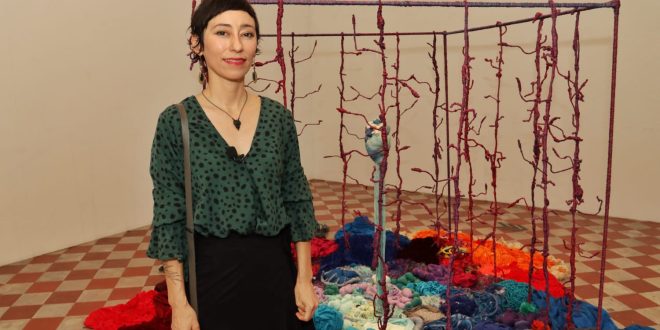 Lizzete Abraham se expresó con hilo, tela, alambre, metal, cartón y fibra de vidrio, en “El límite de la extrañeza”, donde “el concepto es cómo yo batallo con el extraño que se mueve; para mí, la realidad es muy extraña y, todos los días, trato de encontrarle una coherencia, a través del arte”.
