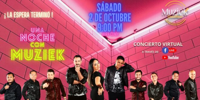 La espera terminó y el próximo sábado 2 de octubre, en punto de las 9:00 de la noche, Muziek Grand Band ofrecerá un nuevo concierto virtual titulado “Una Noche Con Muziek”, el cual han estado preparando con mucho cariño y emoción.