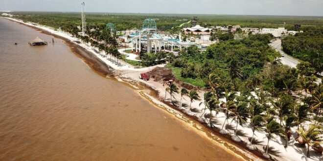 “Tristemente todos los días tenemos manchones grandes de sargazo, estamos retirando por día un aproximado entre 50 a 90 toneladas diarias de sargazo. Estamos hablando de dos kilómetros de playas públicas”, señaló Luís Cardeña.