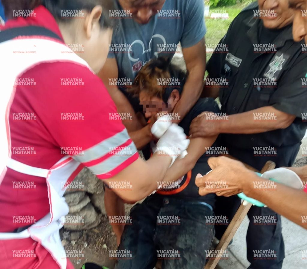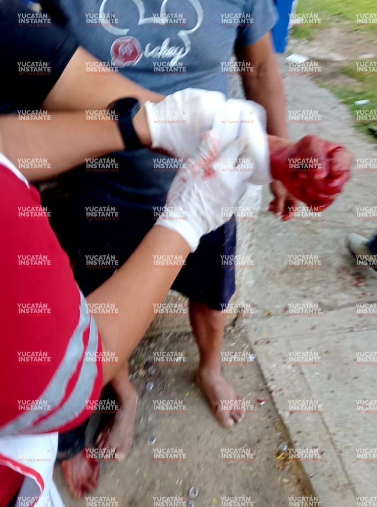 Sin embargo, el chavo siguió terco y camino hasta el centro de este pueblo, para empezar a esparcir sangre y finalmente el vehículo de traslado lo llevó hasta el Hospital H’Orán de Mérida.