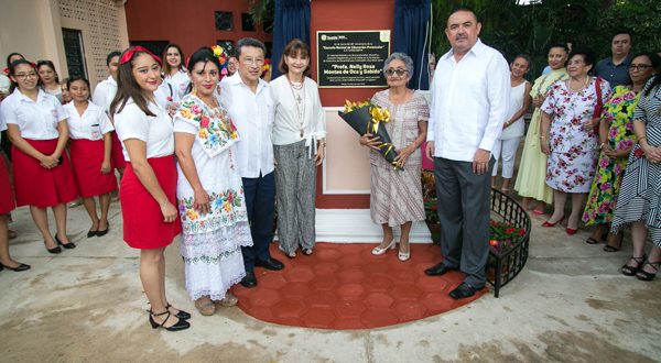 En emotiva ceremonia, la titular de la Secretaría de Educación del Gobierno del Estado (Segey), Loreto Villanueva Trujillo, develó la placa que oficializa la instauración de la nueva nomenclatura del plantel y resaltó la importancia del legado de la laureada, que ha sido base para que las generaciones que tuvo a su cargo respondan a la altura de los retos de este tiempo.