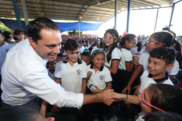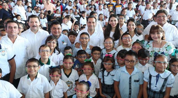 “Los papás y las mamás no van a poner ni un solo peso para los lentes de sus hijos y en todas las escuelas de Yucatán, de la mano de la Fundación, se les realizará a los estudiantes el examen de la vista”, añadió el Gobernador.