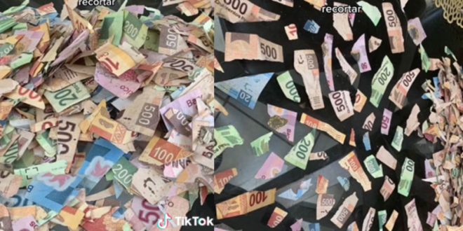 El usuario Alexander Cera contó que su prima, una pequeña de cuatro años, encontró los billetes en su recámara, pero pensó que eran papelitos de colores y decidió cortarlos con tijeras.