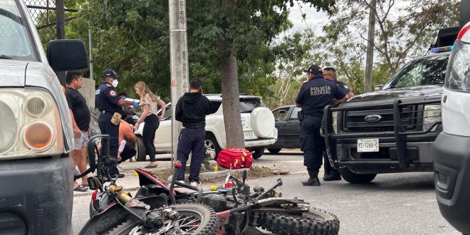Según se supo el conductor de la moto transitaba de poniente a oriente por la calle 31 y al llegar al cruce con la arteria 104, una camioneta Nissan salió intempestivamente de un negocio de materiales “Construpac 2” y colisionaron.