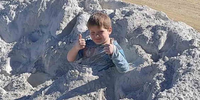 El menor fue fotografiado por sus familiares justo en el momento en el que jugaba en medio de una montaña de polvo, e incluso en la imagen se observa como saluda feliz a la cámara.