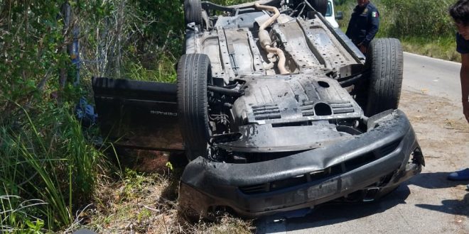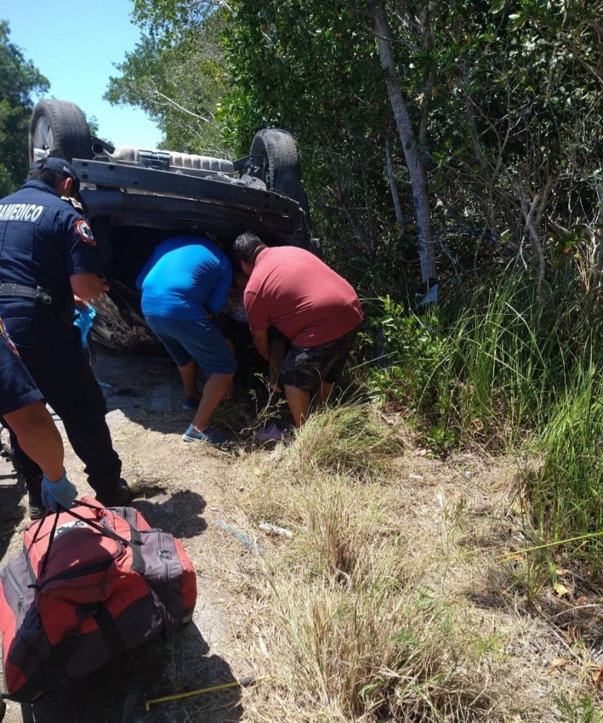 Eso hizo que la camioneta se saliera del pavimento y perdiera el control del volante, dando varias volteretas para terminar bocabajo.