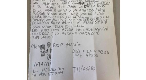 Thiago, un niño de 8 años, gastó sus ahorros para intentar que su mamá, quien padece cáncer, conociera a Ricky Martin con la ayuda de un programa de televisión.