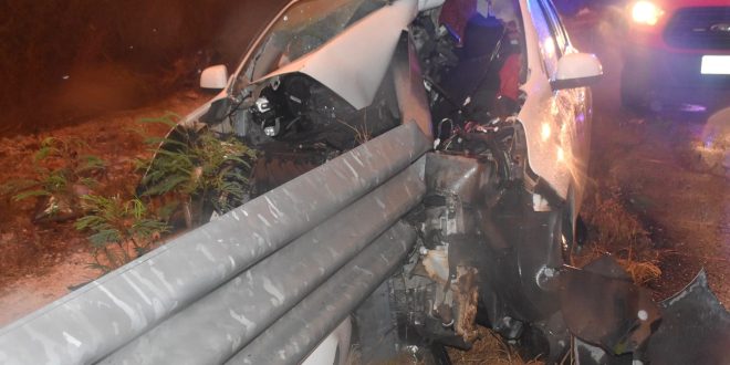 Seyé, Yuc., a 11 de abril 2024.- Literal volvió a nacer Edgar Emilio de la Cruz Martínez, luego de que a bordo de un vehículo, propiedad de la empresa porcícola “San Gerardo” se impactará y a demás se incrustara en la valla de contención de la curva ubicada en el entronque a San Bernadino, a la altura del kilómetro 26 de la carretera Mérida – Cancún.