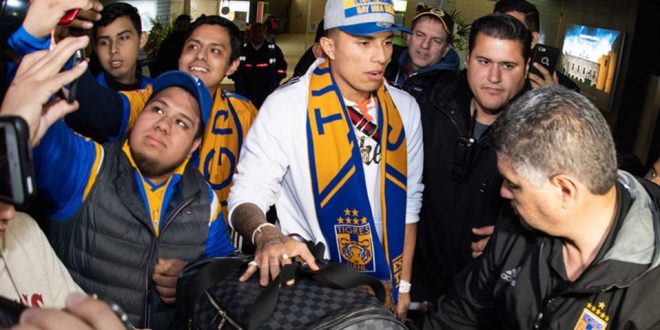 El jugador arribó en medio de un caos hecho por la gran cantidad de medios de comunicación que se dieron cita en el aeropuerto Mariano Escobedo, además de unos cuantos aficionados que buscaron la fotografía con el refuerzo auriazul.
