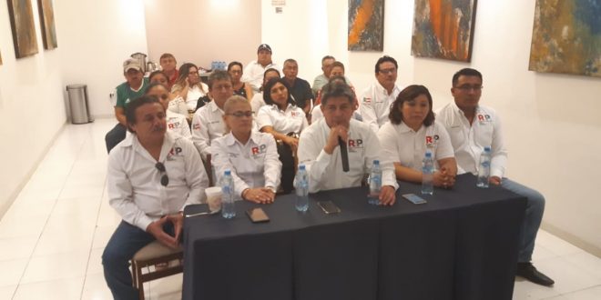 Durante una rueda de prensa, el Coordinador Estatal de RSP en Yucatán estuvo acompañado por Sandra Gómez Blum, Coordinadora de mujeres en RSP; Valeria Avilés Muñoz, Coordinadora de jóvenes progresistas, entre otros.