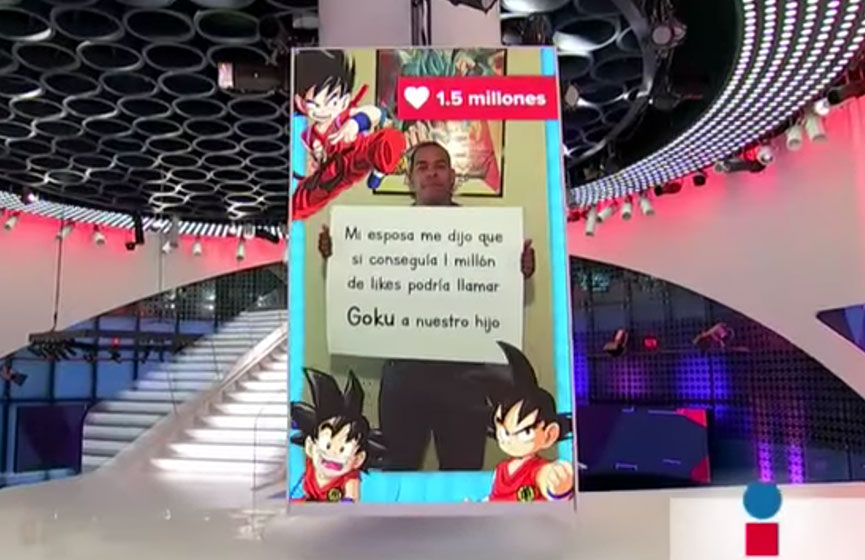 Otro de los retos de redes sociales se creó en México, donde un hombre le quería poner a su hijo Gokú, de nombre, pero como su esposa no quería, lanzó la propuesta de que si conseguía un millón de ‘likes’ en redes sociales, se le quedaba ese nombre.