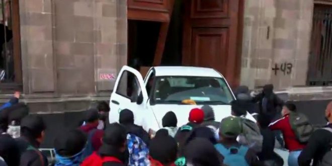 Normalistas de la Escuela Normal Rural de Ayotzinapa derribaron con una camioneta una puerta de Palacio Nacional; sin embargo, el presidente López Obrador señaló que “están siendo manipulados”