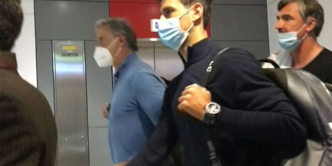 El tenista serbio bajó del avión con dos maletas y mascarilla, tras aterrizar a las 05H32 local (01H32 GMT) en el Aeropuerto Internacional de Dubái.