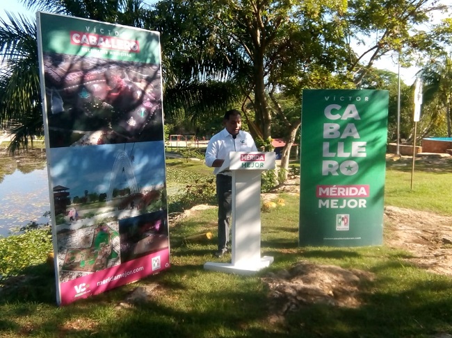 Mérida, Yucatán a 28 de mayo. El candidato a la alcaldía de Mérida, Víctor Caballero Durán, señaló que se buscará rediseñar espacios públicos para convertirlos en parques temáticos, para así lograr atraer de nueva cuenta a las familias meridanas.