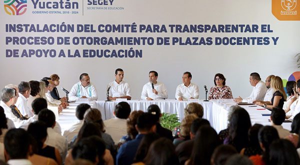 En presencia de María Eugenia Sansores Ruz, comisionada presidenta del Instituto Estatal de Transparencia, Acceso a la Información Pública y Protección de Datos Personales, quien forma parte del Comité, y de la titular de la Secretaría de Educación del estado (Segey), Loreto Trujillo Villanueva, Vila Dosal recordó que en su recorrido por Yucatán una de las demandas más repetidas de las y los profesores fue la necesidad de hacer más claro y justo el proceso para designar plazas de trabajo, pues hasta ahora se trata de un proceso que no cumplía con esas necesidades.