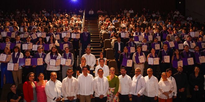 Las nuevas ingenieras e ingenieros subieron al estrado para recibir su título de manos del rector, quien estuvo acompañado en el presídium por Ernesto Mena Acevedo, director de Fortalecimiento de Educación Superior de la Secretaría de Educación (Segey), así como por Raúl Rebolledo Alcocer, presidente de la Cámara Nacional de la Industria Electrónica, de Telecomunicaciones y Tecnologías de la Información (Canieti), sede Sureste; Fátima Perera Salazar, titular de la Secretaría del Bienestar; Patricia Martín Briceño, secretaria de la Cultura y las Artes; y Diana Castañeda, presidenta de la Asociación Mexicana de Mujeres Empresarias.