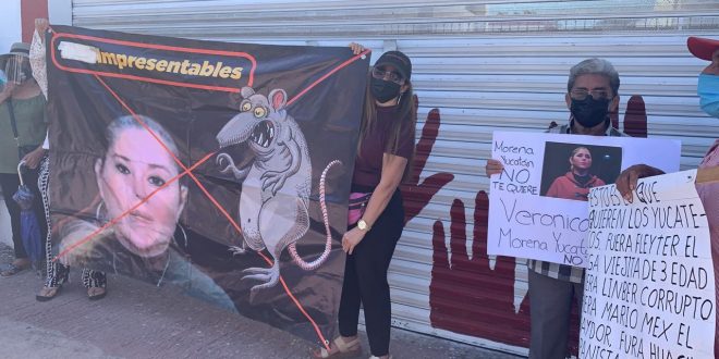 Asimismo, rechazaron la designación de Orlando Pérez Moguel como representante de Morena ante el instituto Electoral y de Participación Ciudadana de Yucatán (Iepac); y colgaron una lona con su fotografía junto a dibujos de ratas.