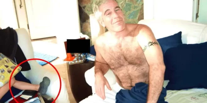 Otro de los elementos que ha causado polémica es una fotografía en la que Epstein aparece sonriente, sin camisa y con una toalla blanca alrededor de la cintura, sentado en un sofá. A su lado se distingue a otra persona que queda fuera de cuadro, pero de la que se alcanza a ver una pierna y un pie pequeño, con una zapatilla deportiva negra, lo que ha llevado a suponer que podría tratarse de un menor.