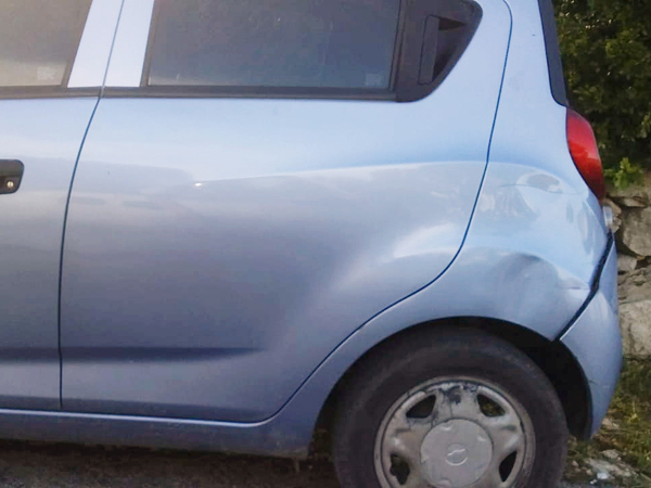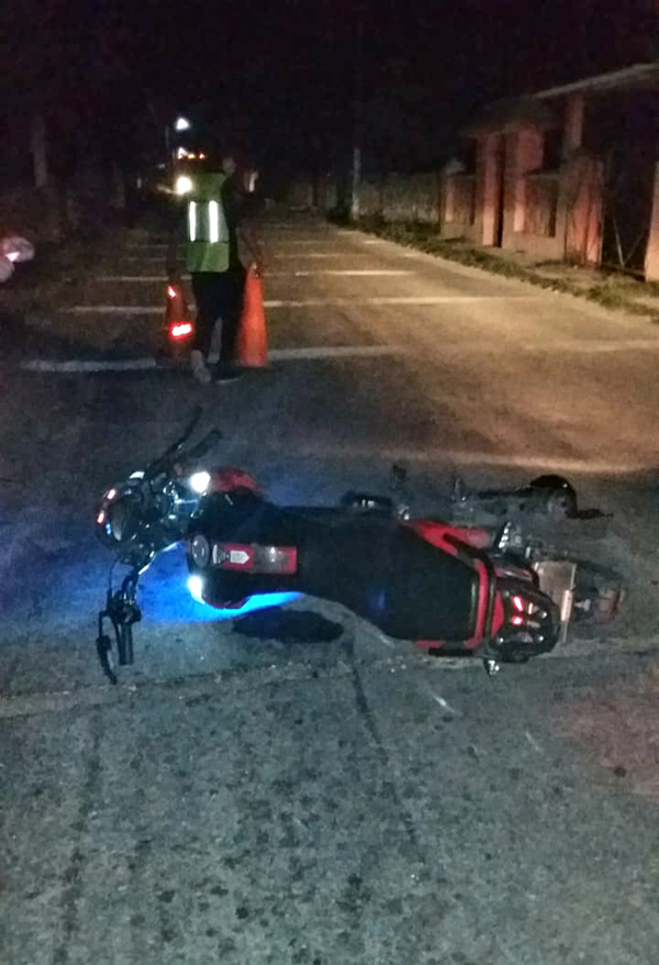 Tetiz, Yuc., 1 de octubre de 2019.- Otra vez se suscitó otro incidente en la calle 20, a la salida sur de este municipio, cuando un “Kinchilebrio” a bordo de su motocicleta impactó por alcance con un vehículo Spark para acabar derrapando la noche de ayer.