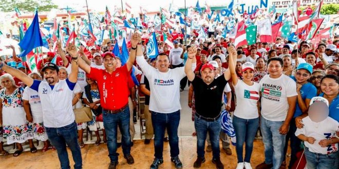 Ante cientos de personas reunidas, durante el mitin, Renán Barrera anunció que en su gobierno se remodelará el mercado del municipio y hará las gestiones necesarias para que Oxkutzcab sea Pueblo Mágico y de esta manera promover el turismo en la localidad.