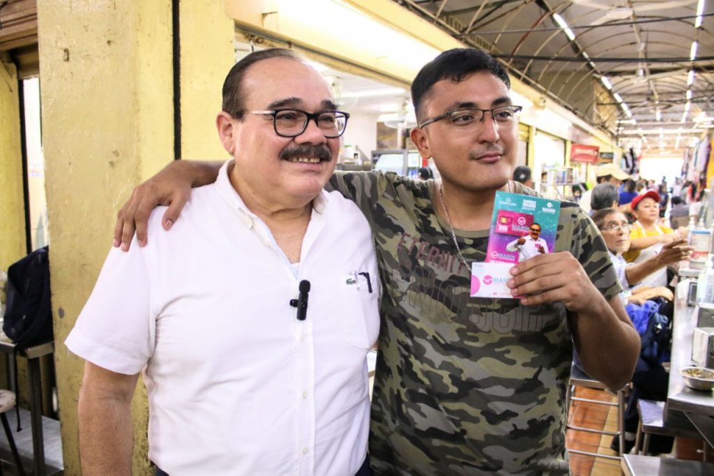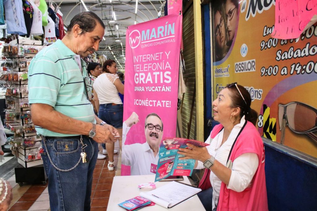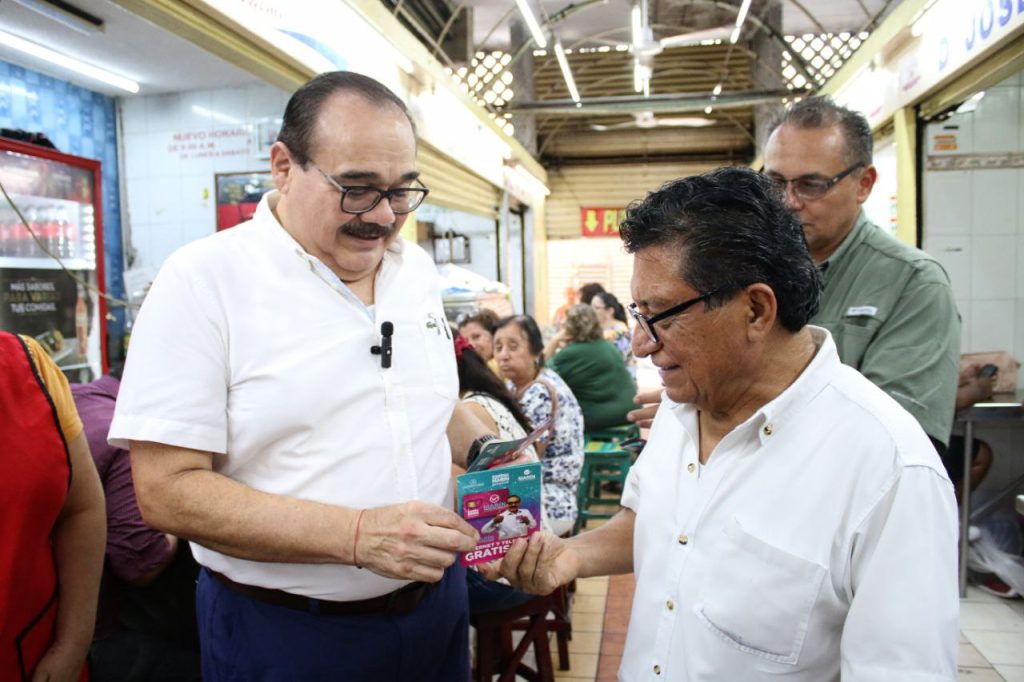 -En visita al céntrico mercado, el Senador yucateco entregó a los trabajadores tarjetas del programa Internet y Telefonía Gratis que ayuda a cerrar la brecha digital.