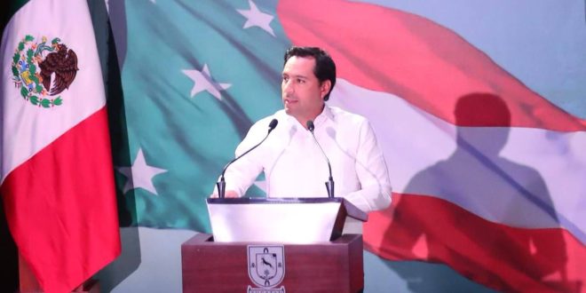 “Por ejemplo, en ceremonias oficiales, cívicas, culturales, escolares o deportivas, se deberá rendir honores a la bandera yucateca y deberá ir acompañada de su himno. Y previamente hacer los honores a nuestra enseña nacional e interpretar nuestro himno nacional mexicano”, agregó.
