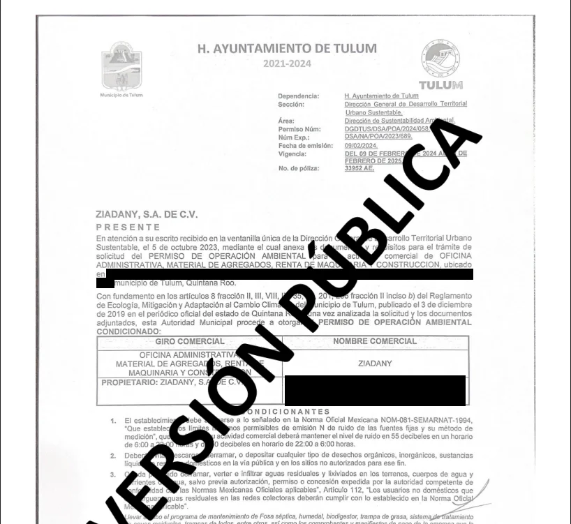Ziadany S.A. de C.V. tiene antecedentes en el sector de la construcción, pero no se le conocen operaciones previas en el ámbito de los servicios ambientales. De hecho, documentos oficiales la identifican como contratista de obra pública en Tulum, Quintana Roo, durante la administración 2021-2024.