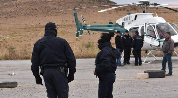 Minutos más tarde se escuchó un fuerte ruido: se trataba de un helicóptero propiedad del Gobierno de Chihuahua, que regresaba de un sobrevuelo por la zonas serranas con el vecino estado de Sonora. La nave aterrizó y descendieron tres agentes estatales.