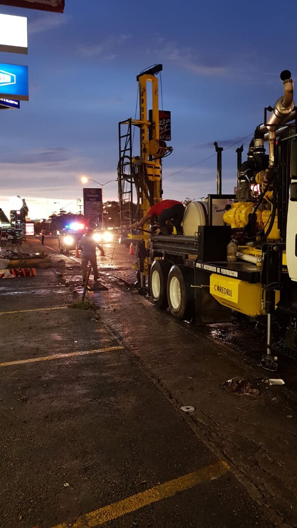 Agregó que la labor de los departamentos de drenaje se complementa con el apoyo de 8 pipas con capacidad de 20,000 litros cada una, tres máquina vactor con capacidad de 14,000 litros y 5 volquetes utilizados para desaguar diversos puntos donde se acumula el agua durante la lluvia. En esta administración, agregó, se adquirieron dos máquinas perforadora de pozos de 10 pulgadas, una de las cuales, la más nueva se utilizó para realizar el pozo frente a dicha plaza comercial.