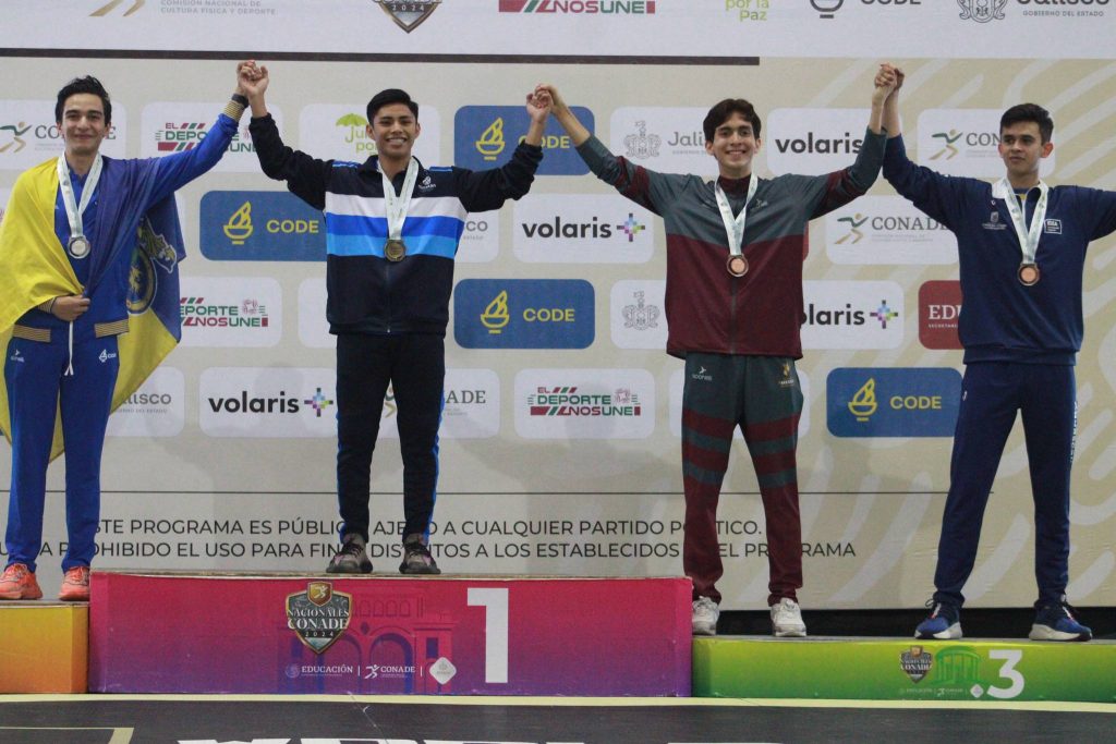 Por su parte el equipo juvenil varonil el cual integran Jorge Alejandro Caballero Pavón, Juan Moreno Gómez y Miguel Angel Moreno Gómez, aportaron medalla de bronce, honor que compartieron con sus similares de Nuevo León, esta prueba fue ganada por el combinado de Jalisco con la medalla de oro y Tabasco fue quien ganó la presea de plata.