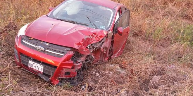 El automóvil Ford línea scape color rojo modelo 2013, con placas de circulación del estado de Hidalgo, salió de la cinta de asfalto y terminó en la maleza en el kilómetro 25.