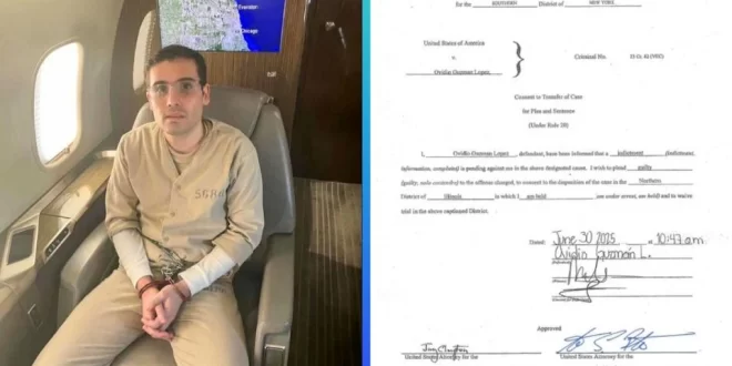 “Yo, Ovidio Guzmán López, acusado, he sido informado de que una acusación formal (acusación, información o denuncia) está pendiente en mi contra en el distrito indicado arriba”, se lee en el documento de la Corte difundido por le periodista Keegan Hamilton.