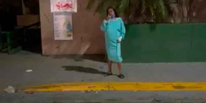 Decenas de personas fueron testigos de la presencia de la mujer en las calles aledañas a ese centro de Salud, en donde la paciente fue divisada vestida con una bata azul e incluso con mangueras de oxígeno.