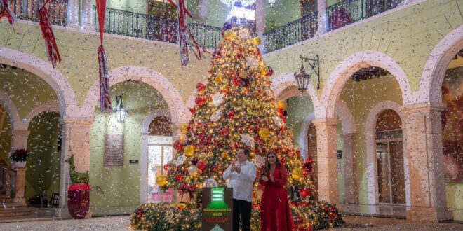 Gobernador Joaquín Díaz Mena enciende el árbol navideño en Palacio de Gobierno