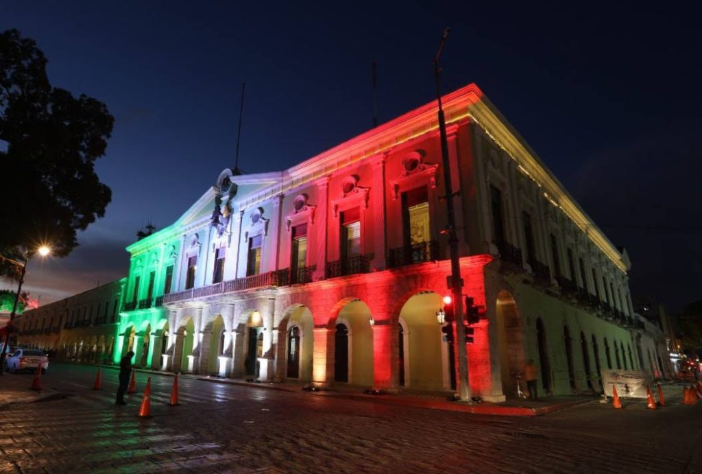 A partir de hoy y hasta el 30 de septiembre, la sede del Poder Ejecutivo estatal lucirá todas las noches con los colores verde, blanco y rojo de la enseña nacional, con lo que Yucatán se suma a estas festividades.