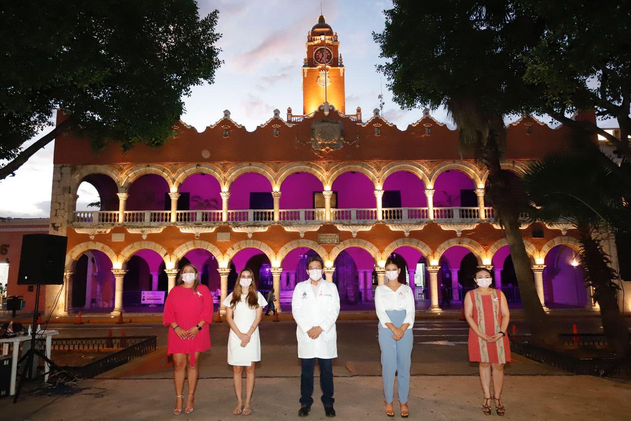 En este programa de actividades, se contempló que a partir de hoy el Palacio Municipal y el Monumento a la Patria se iluminen de color rosa en señal de solidaridad y compromiso con las mujeres meridanas que han fallecido o luchan contra esta enfermedad.