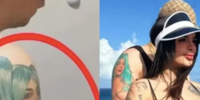 En la foto, aparece la también influencer abrazada por un hombre que lleva el mismo tatuaje que tenía en brazo el fan con quien protagonizó un video íntimo, esto, como premio por tatuarse el rostro de la modelo.