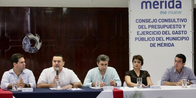 Mérida, 13 de diciembre de 2019.—Para el Ayuntamiento es fundamental el ejercicio transparente de los recursos, que son de todos los meridanos, así como la estricta vigilancia de su distribución y ejecución, a fin de destinarlo a los proyectos y programas más necesarios en la ciudad, afirmó el alcalde Renán Barrera Concha al encabezar la Cuarta Sesión Ordinaria del Consejo Consultivo del Presupuesto y Ejercicio del Gasto del Municipio de Mérida 2018-2021.