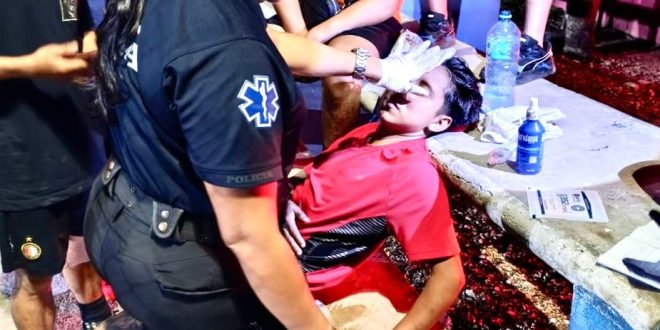 Inicio / Destacada policía / Paramédicos de Kanasín atienden a futbolista que se pegó en la frente con poste metálico
