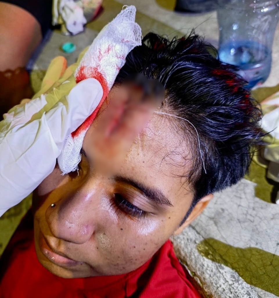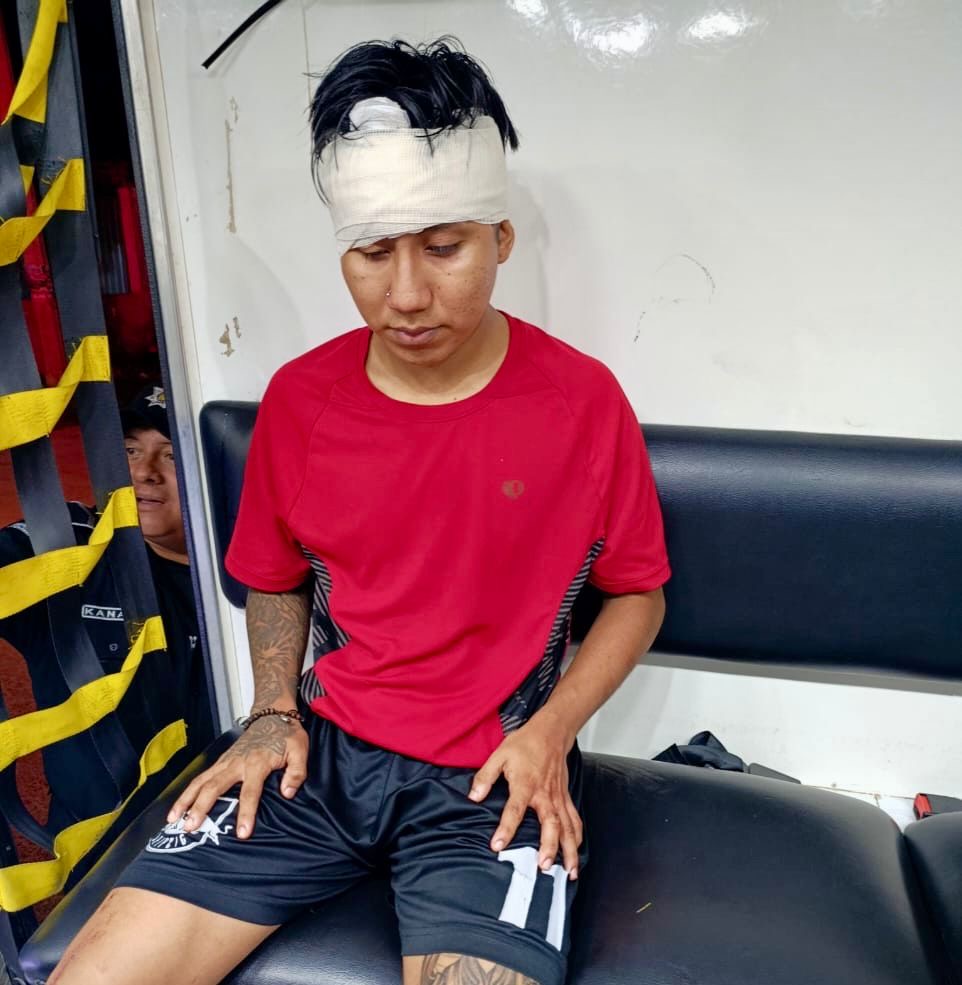 La paramédica que lo atendió le suturó la herida y al lesionado se le traslado al Centro de Salud de #Kanasín para ser valorado a mayor profundidad.