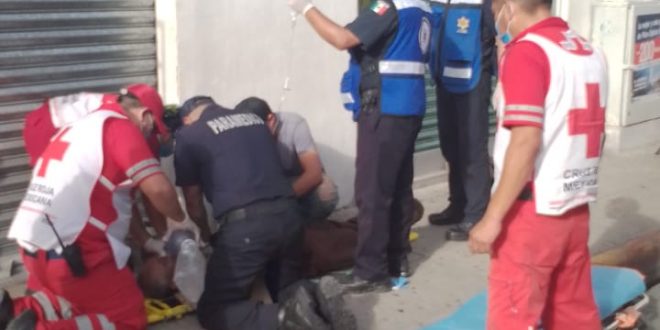 Mérida, Yucatán a 4 de agosto de 2023.- Con la oportuna intervención del equipo de paramédicos de la Policía Municipal de Mérida y de la Cruz Roja se logró reanimar a un hombre de aproximadamente 50 años de edad, quien había caído en un paro cardiaco en la calle 61 entre 54 y 56 del centro de la ciudad.