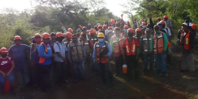 IZAMAL, Yuc., 16 de junio 2022.-  Ayer miércoles en la mañana, unos 150 trabajadores, entre varones y mujeres, pararon sus labores en la construcción del Tren Maya, en el tramo de Citilcum, en protesta porque se les pretende aumentar el horario de trabajo sin pagarles las horas extras.