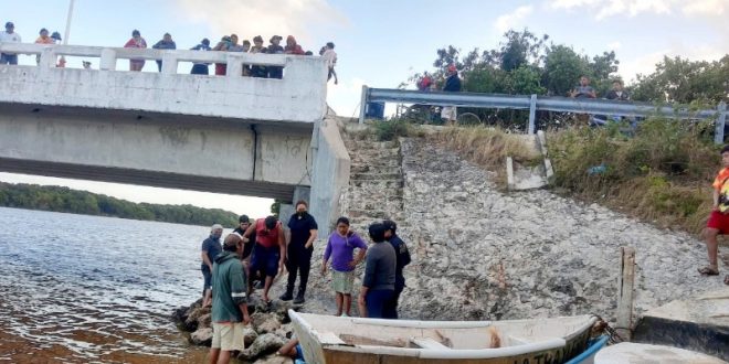 Celestún, Yuc., 3 de febrero.- Una pareja de esposos quedaron policontundidos, luego de caer de las escaleras que están a un costado del puente, justo a la entrada a este puerto, y todo por pretender admirar por debajo la Ría de Celestún.