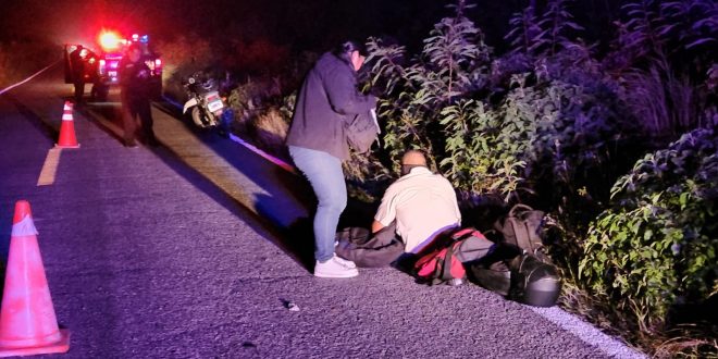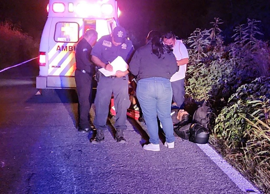 Kinchil, Yuc., a 03 de noviembre 2022.- Una pareja que transitaban en una motocicleta tuvieron una tremenda derrapada tras pinchar una llanta anoche, justo en el kilómetro 50 de el tramo federal Kinchil-Celestún, donde hace unos meses perdieron la vida cinco personas en brutal encontronazo.