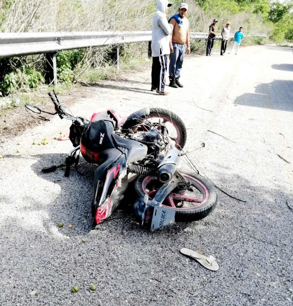 El hecho de tránsito se registró ayer en la tarde cuando Edgar Marrufo Pérez, de 35 años de edad, manejaba una motocicleta Itálika 150 cc., acompañado de su esposa Fernanda Segura Cocom, de 21 años, pero debido a que presuntamente el guiador tenía unas copas encima, en un momento dado perdió el control del manubrio para derrapar a la altura del kilómetro 15, de citado tramo minutos después de las 16 horas.