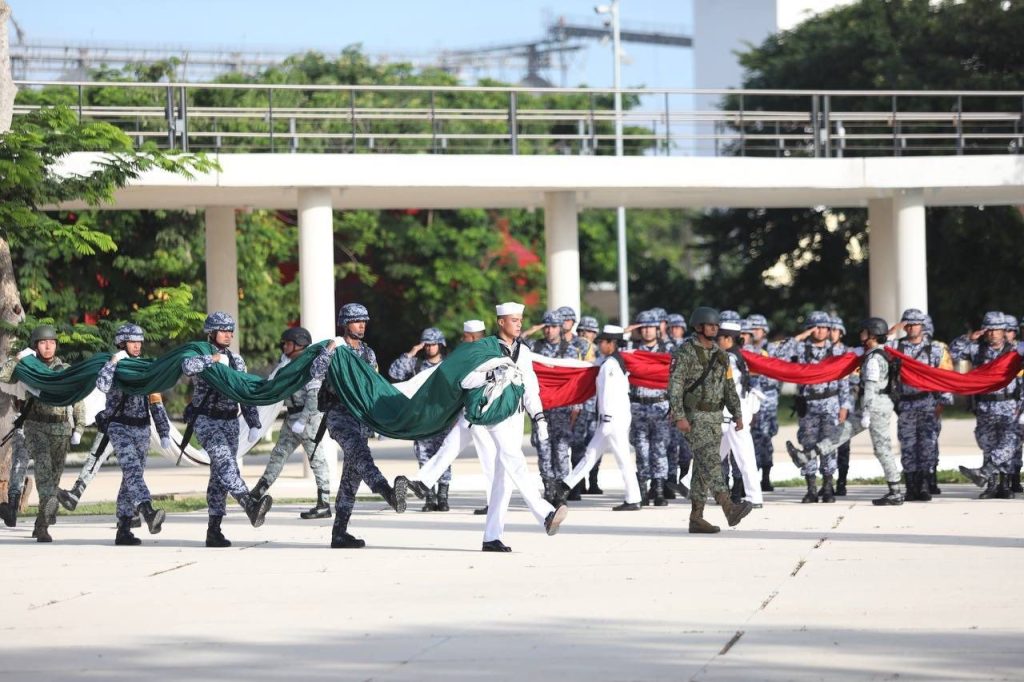 En el acto de izamiento del lábaro patrio participaron también elementos de la Secretaría de la Defensa Nacional, Secretaría de Marina – Armada de México, Guardia Nacional, Fuerza Aérea Mexicana, Secretaría de Seguridad Pública, Bomberos, paramédicos y Cruz Roja.